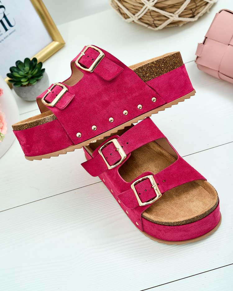 - Skvelé dámske žabky na platforme. Vyrobené výhradne z ekologickej semišovej kože. Na zvršku majú ozdobné pracky. Podrážku zdobí materiál a'la korok. Perfektná voľba na dovolenku!