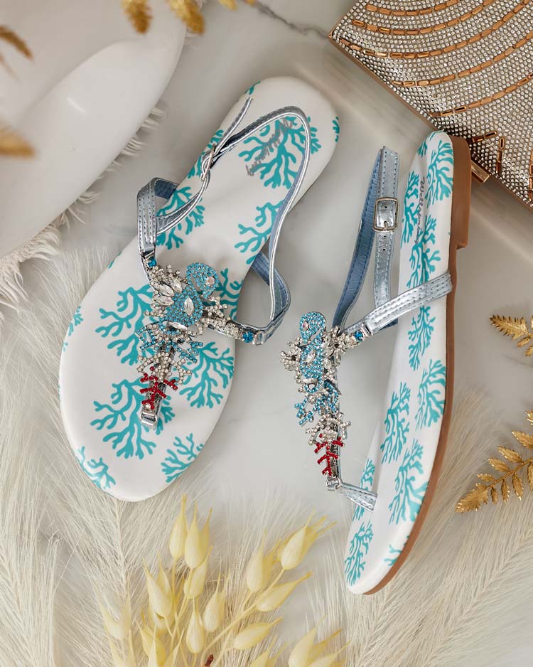 - Módne ploché dámske žabkové sandále, vyrobené výhradne z ekokože. Zapínajú sa na pracku s ozdobnými prackami, ktoré im dodávajú jemnosť. Ideálne na letné prechádzky a výnimočné príležitosti!