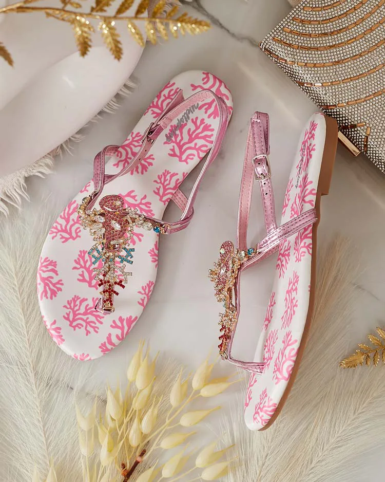 - Módne ploché dámske žabkové sandále, vyrobené výhradne z ekokože. Zapínajú sa na pracku s ozdobnými prackami, ktoré im dodávajú jemnosť. Ideálne na letné prechádzky a výnimočné príležitosti!