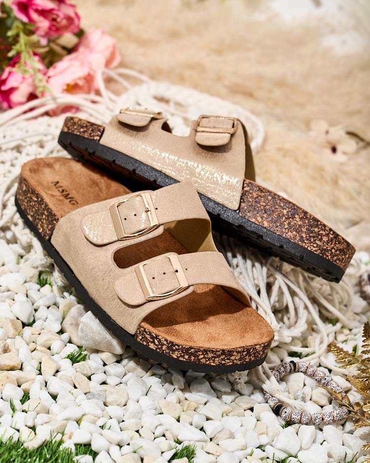 - Skvelé dámske žabky s plochou podrážkou. Vyrobené výlučne z ekologickej kože. Na zvršku majú ozdobné pracky. Podrážku zdobí materiál a'la korok. Perfektná voľba na dovolenku!