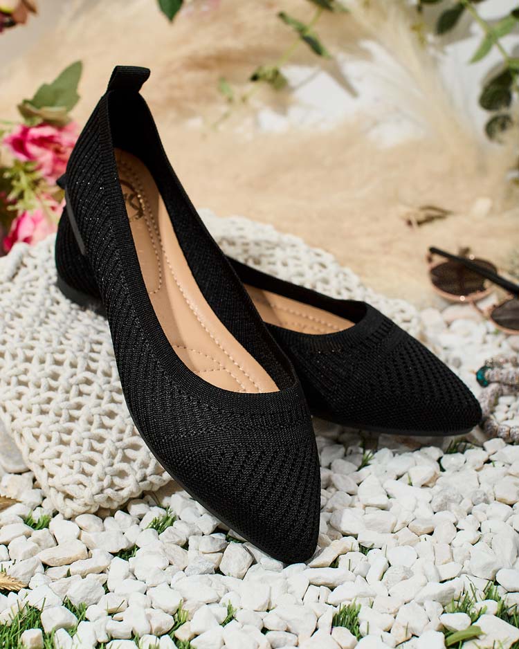- Jedinečné baleríny z látky so špicatou špičkou. Mäkká stielka z ekokože sa postará o pohodlie. Budú perfektné pre elegantný a módny styling!