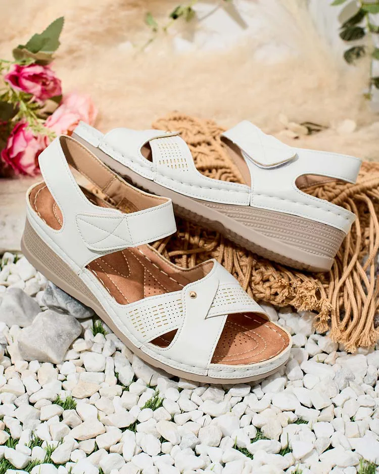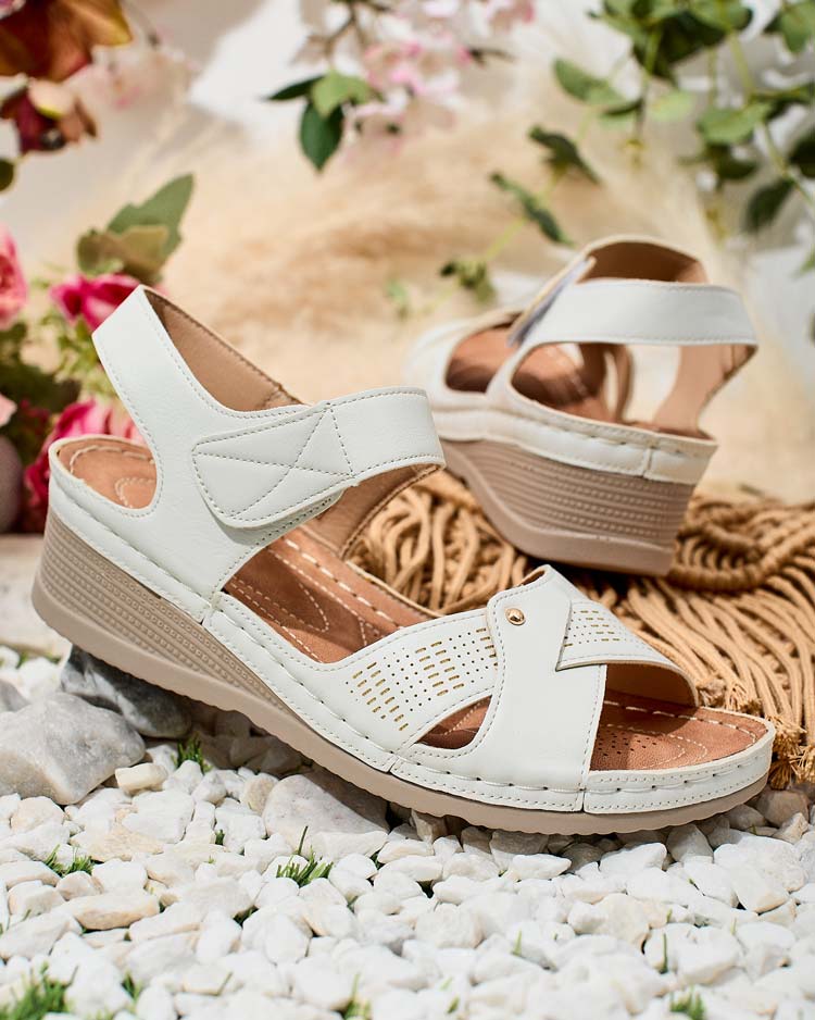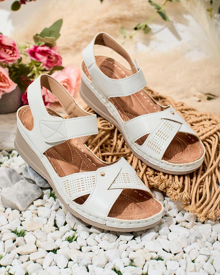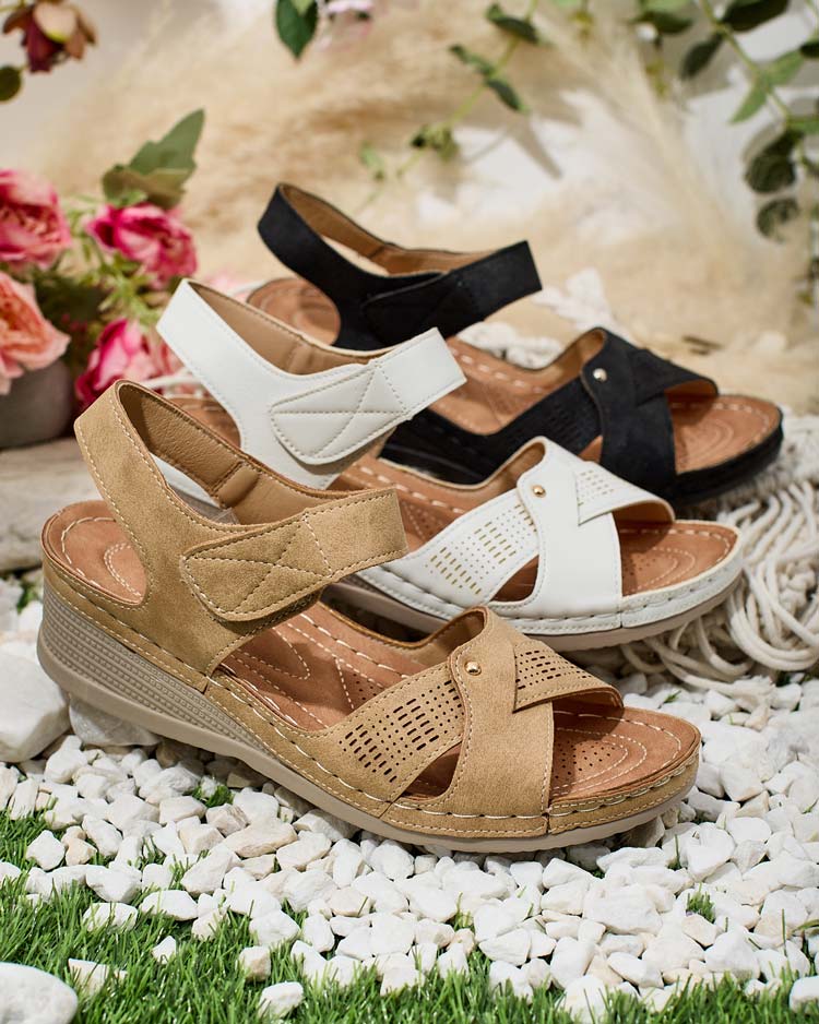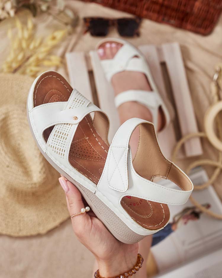 - Dámske sandále na nízkom podpätku. Sú vyrobené z ekokože, stielka je z ekokože. Obuv sa zapína na remienky so suchým zipsom. Ideálne na vytváranie módnych letných outfitov!