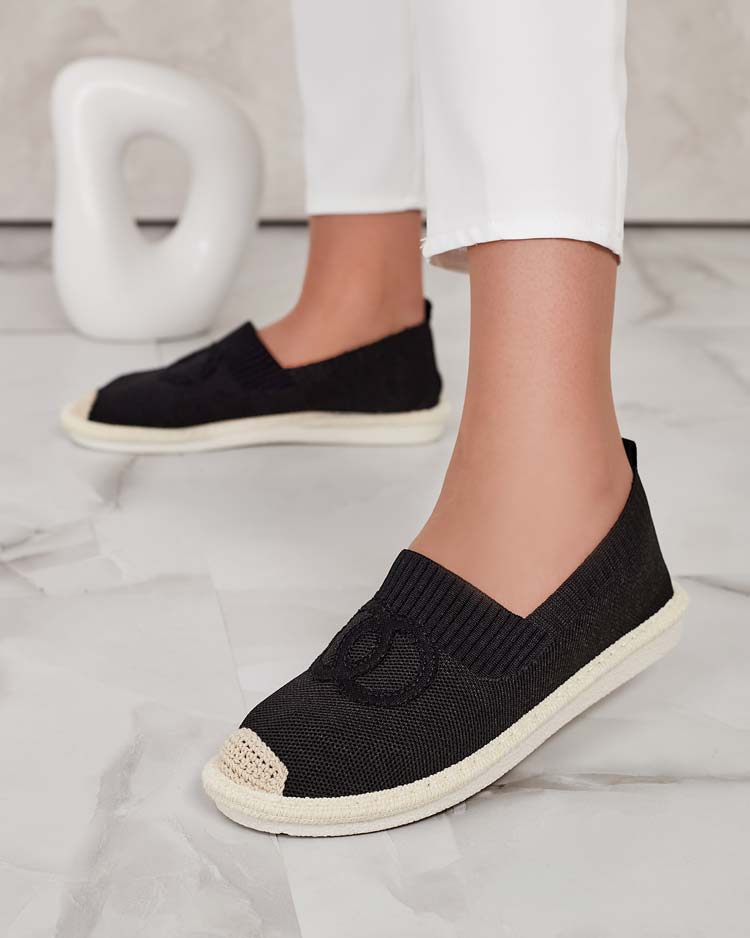 - Jedinečné dámske espadrilky z látky a látkovou stielkou. Plochá podrážka zdobená jutovou šnúrkou poskytuje pohodlie. Model na nazúvanie. Perfektný doplnok k letným štýlom!
