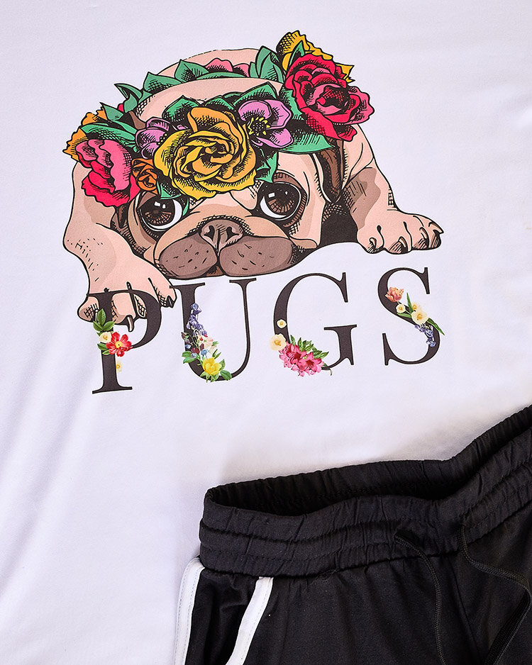 - Dámsky komplet z príjemného materiálu. Model má potlač s psíkom. Blúzka s krátkymi rukávmi a krátke šortky s elastickým pásom. Cíťte leto v tejto nádhernej súprave!