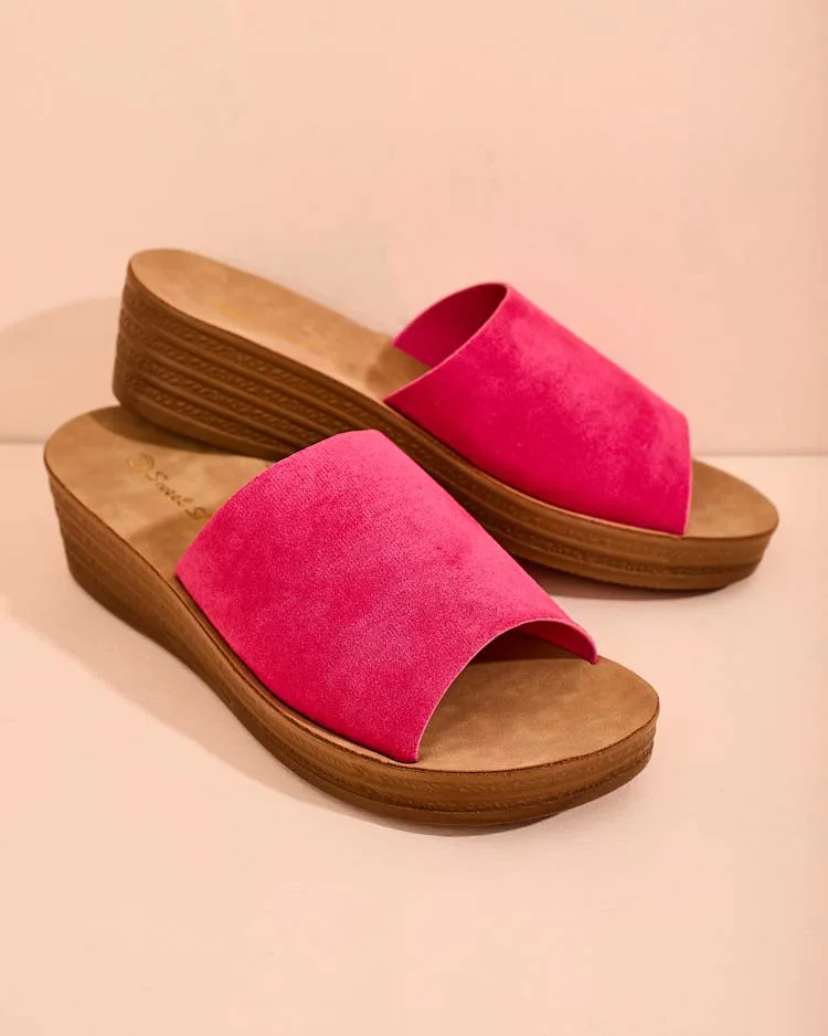 - Dámske žabky zo semišovej ekokože a stielkou z ekokože. Nízky podpätok a platforma im dodávajú šarm a charakter. Užite si pohodlie a štýl, keď si tieto topánky vezmete na dovolenku!