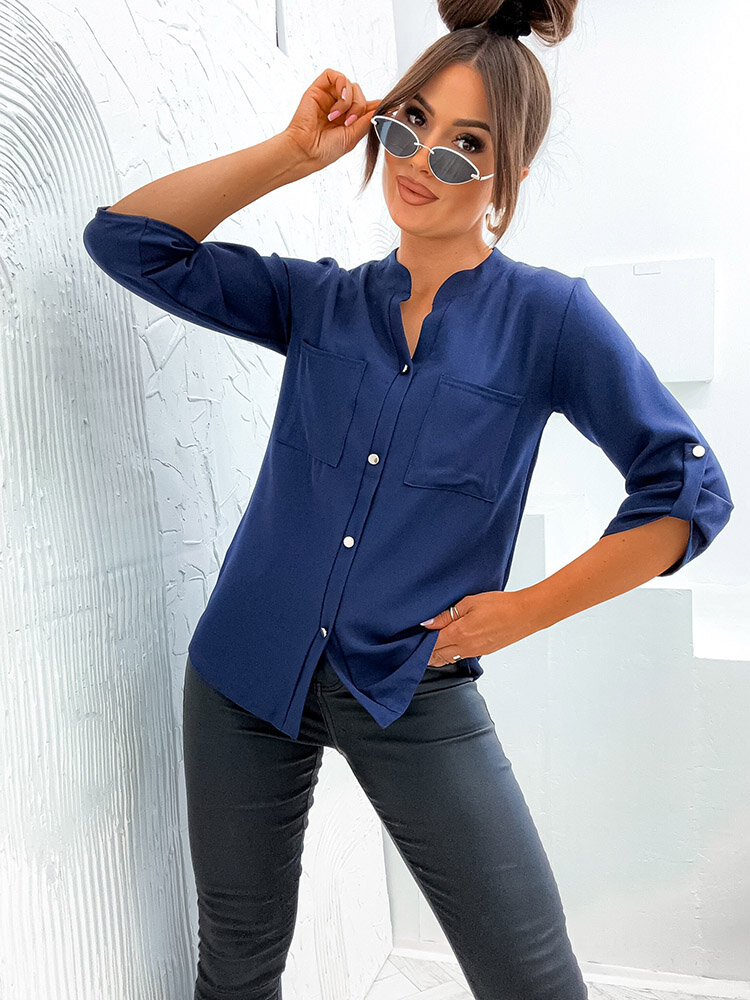 - Klasická dámska blúzka a'la košeľa s dlhými ohrnutými rukávmi. Model s golierom, zapína sa na gombíky. Musí byť v šatníku každej ženy!
