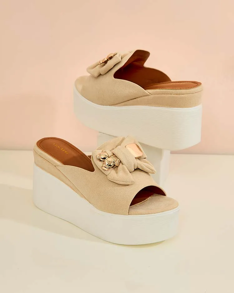 - Dámske žabky z ekologickej semišovej kože a stielkou z eko kože. Vysoký členok, platforma a ozdobná mašľa im dodávajú šarm a charakter. Užite si pohodlie a štýl, keď si tieto topánky vezmete na dovolenku!