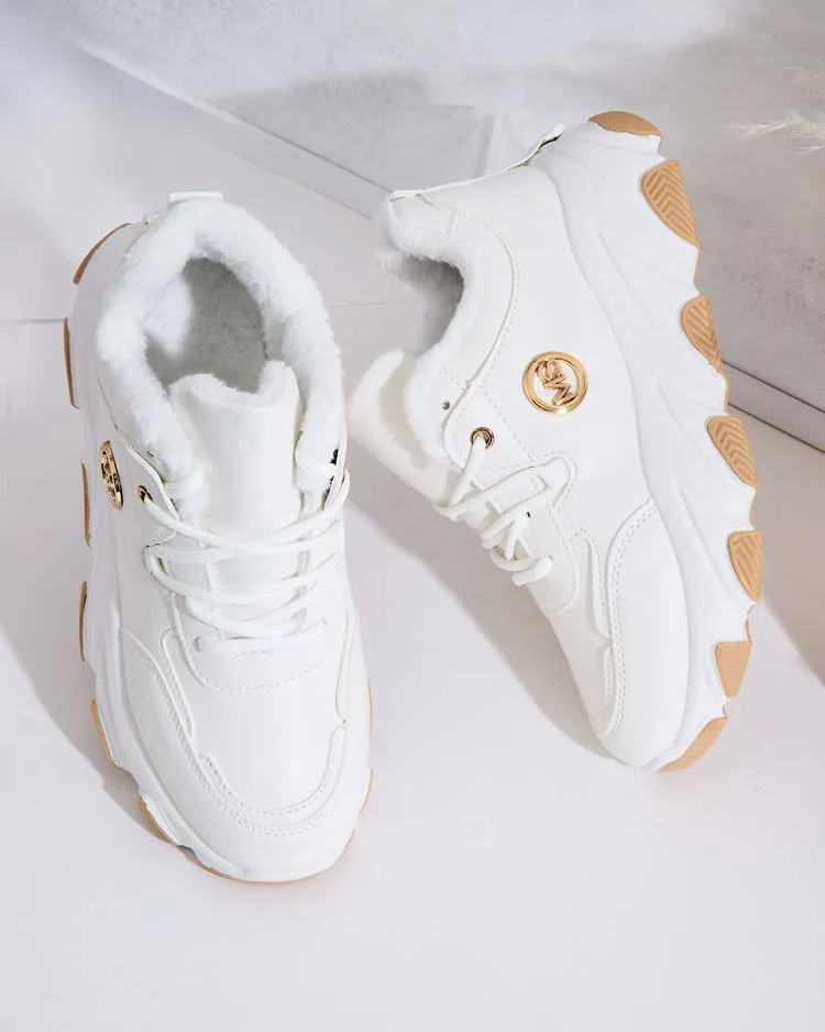 - Dámska zateplená športová obuv na hrubšej podrážke. Šnurovací zvršok z ekologickej semišovej kože. Mäkká kožušina vo vnútri. Super doplnok k vašim zimným ležérnym outfitom!