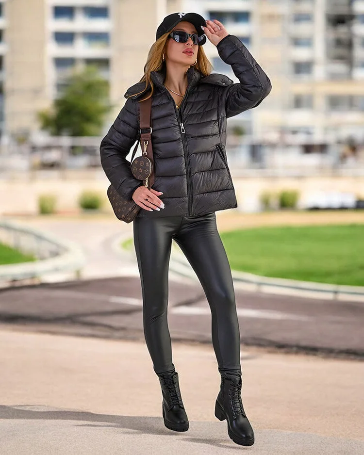 - Teplá dámska zimná bunda s dĺžkou po kolená a odnímateľnou kapucňou. Prešívaný model, má 2 vrecká na zips, syntetickú páperovú výplň a zapínanie na zips. UPOZORNENIE: Presnosť merania (+/-) 1 cm.