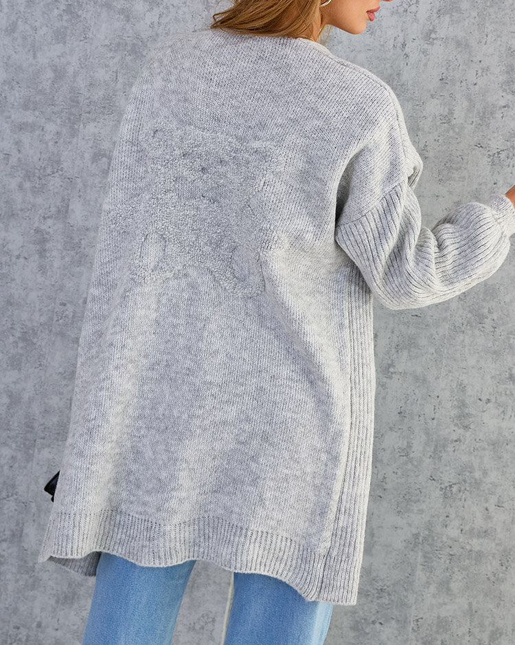 - Krásny dámsky sveter s prehozmi, vyrobený z príjemného pleteného materiálu. Na zadnej strane je ozdobný medvedík. Must have vášho šatníka na doplnenie jesenného stylingu! UPOZORNENIE: Presnosť merania (+/-) 1 cm.