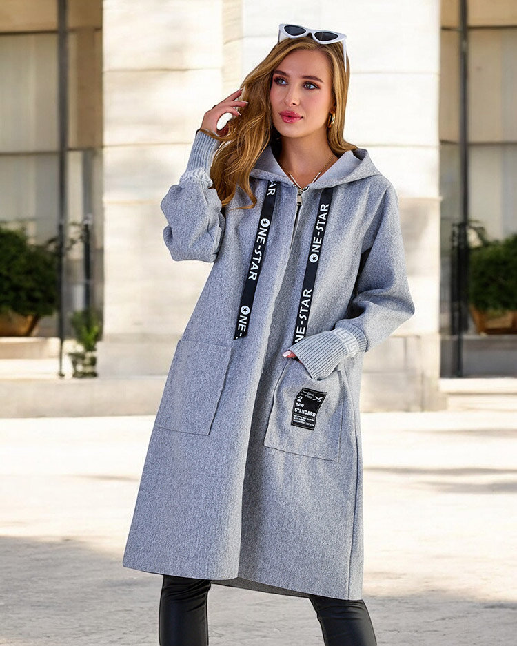 - Originálna dámska bunda a'la kabát s kapucňou. Model má dlhé rukávy a všité vrecká. Rukávy zakončené gumičkami pre lepšie prispôsobenie a pohodlie pri nosení. Perfektný návrh na jeseň! UPOZORNENIE: Presnosť merania (+/-) 1 cm.