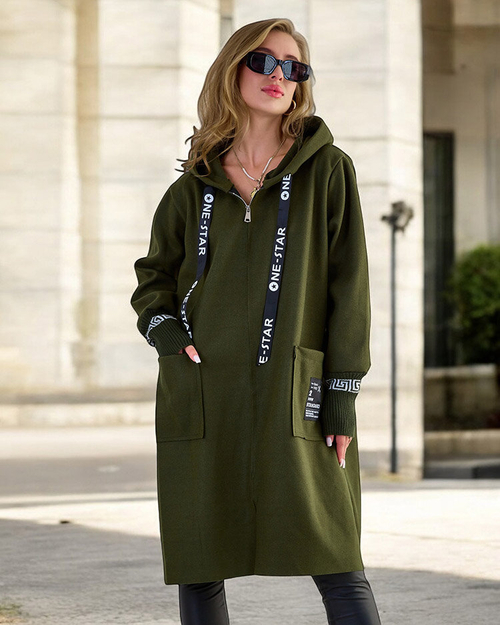 • Originálna dámska bunda a'la kabát s kapucňou. Model má dlhé rukávy a všité vrecká. Rukávy zakončené gumičkami pre lepšie prispôsobenie a pohodlie pri nosení. Perfektný návrh na jeseň! UPOZORNENIE: Presnosť merania (+/-) 1 cm.