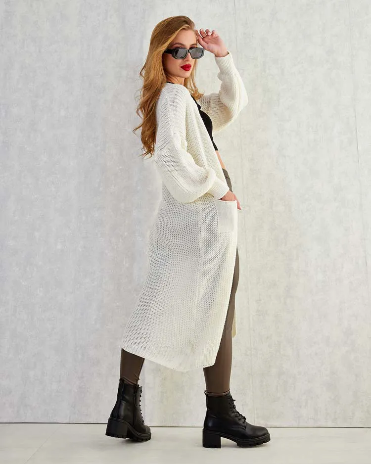 - Krásny dámsky sveter s prehozmi, vyrobený z príjemného pleteného materiálu. Sveter s 2 vreckami. Must have vášho šatníka na doplnenie jesenného stylingu! UPOZORNENIE: Presnosť merania (+/-) 1 cm.