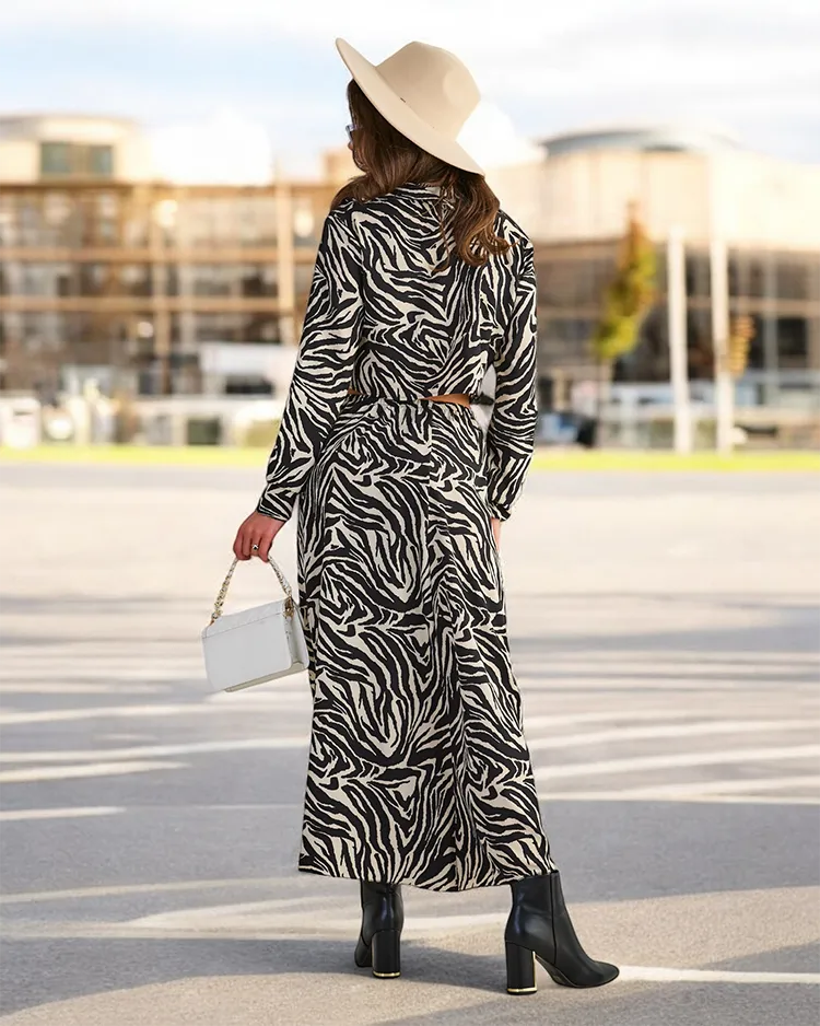 - Jedinečná dámska súprava z príjemnej tkaniny s ozdobnou potlačou. Krátky top s dlhými rukávmi a srdiečkovým výstrihom. Dlhá sukňa je vybavená elastickým pásom. UPOZORNENIE: Presnosť merania (+/-) 1 cm.