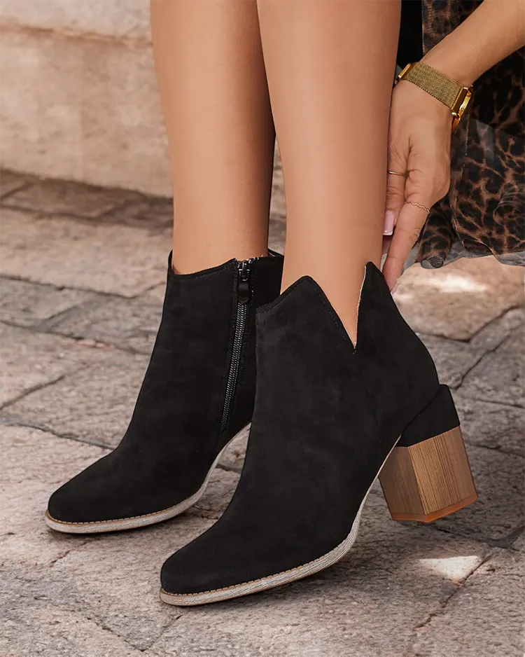 • Elegantné čižmy na podpätku sú kombináciou štýlu a pohodlia v jednom. Výstrih na členku uľahčuje obúvanie. Celé vyrobené z ekologickej semišovej kože a výplne a'la kožušina. Tento model vám dodá sebavedomie!