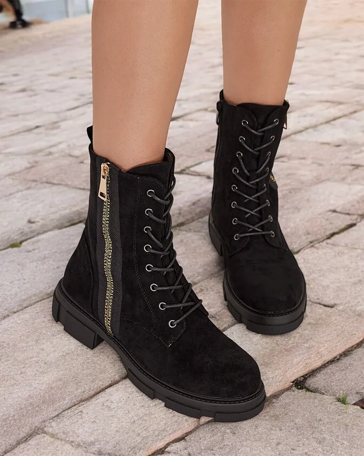 • Štýlové čižmy bagger z ekokože. Čižmy sa šnurujú a zapínajú na zips, majú hrubšiu gumovú podrážku a kožušinovú výplň. Perfektné na jeseň!