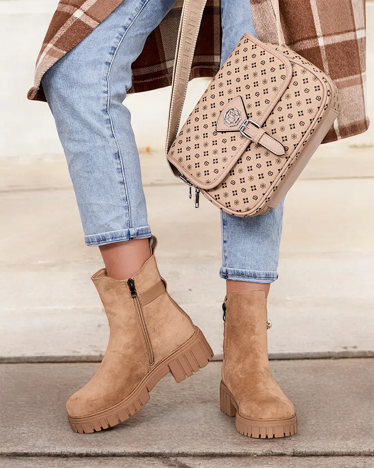 - Klasické dámske čižmy na hrubšej podrážke. Materiál zvršku je ekokoža, vnútri mäkká kožušina. Model sa zapína na zips, na zvršku má decentné zdobenie. Ideálny základ pre mnohé každodenné looky!