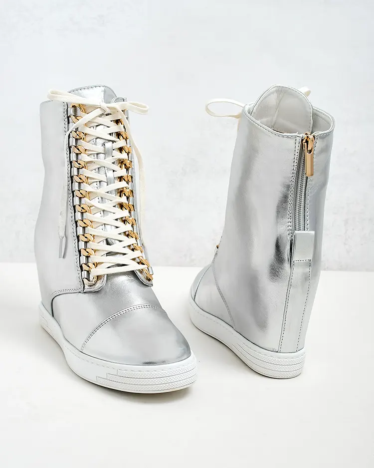 - Dámske športové čižmy na podpätku, vyrobené z ekologickej kože. Topánky sa zaväzujú na šnúrky a vzadu majú zips. Ideálne na vytváranie štýlových outfitov!