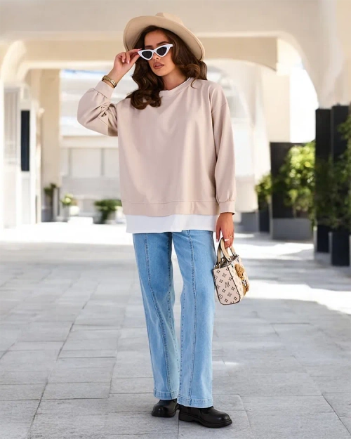 - Dodajte svojmu oblečeniu šmrnc s našou tenšou mikinou. Má imitáciu vyčnievajúceho trička. Vkladá sa cez hlavu, má okrúhly výstrih a dlhé rukávy. Ideálna na každý deň, keď sa chcete cítiť ležérne a zároveň štýlovo!