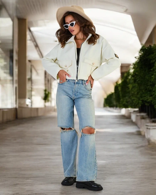 - Štýlová dámska bunda bomber. Model s dlhými rukávmi, má zapínanie na zips a dve vrecká. Bunda má podšívku. Must have tejto sezóny! UPOZORNENIE: Presnosť merania (+/-) 1 cm.