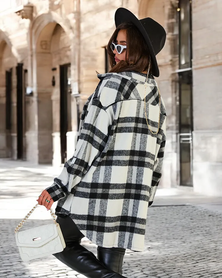 - Štýlový dámsky košeľový kabát so zapínaním na gombíky. Kabát nadrozmerného strihu má dlhé rukávy a 2 vrecká. Skvelý na jeseň!