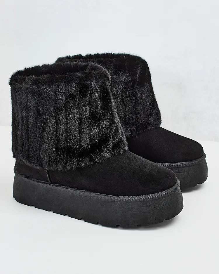 - Skvelé dámske zimné snehule na plochej podrážke. Zvršok je vyrobený z ekologickej semišovej kože, stred je zateplený kožušinou. Obuv má ozdobný kožúšok a'la kožušina. Perfektný základ na zimu!