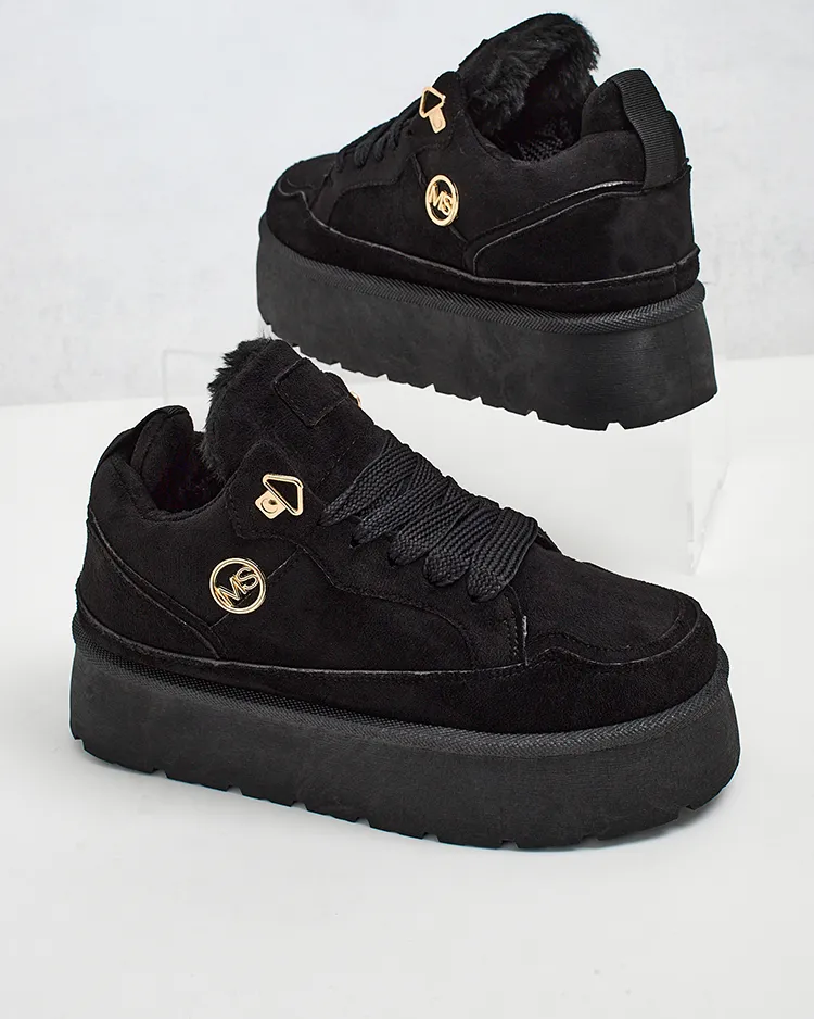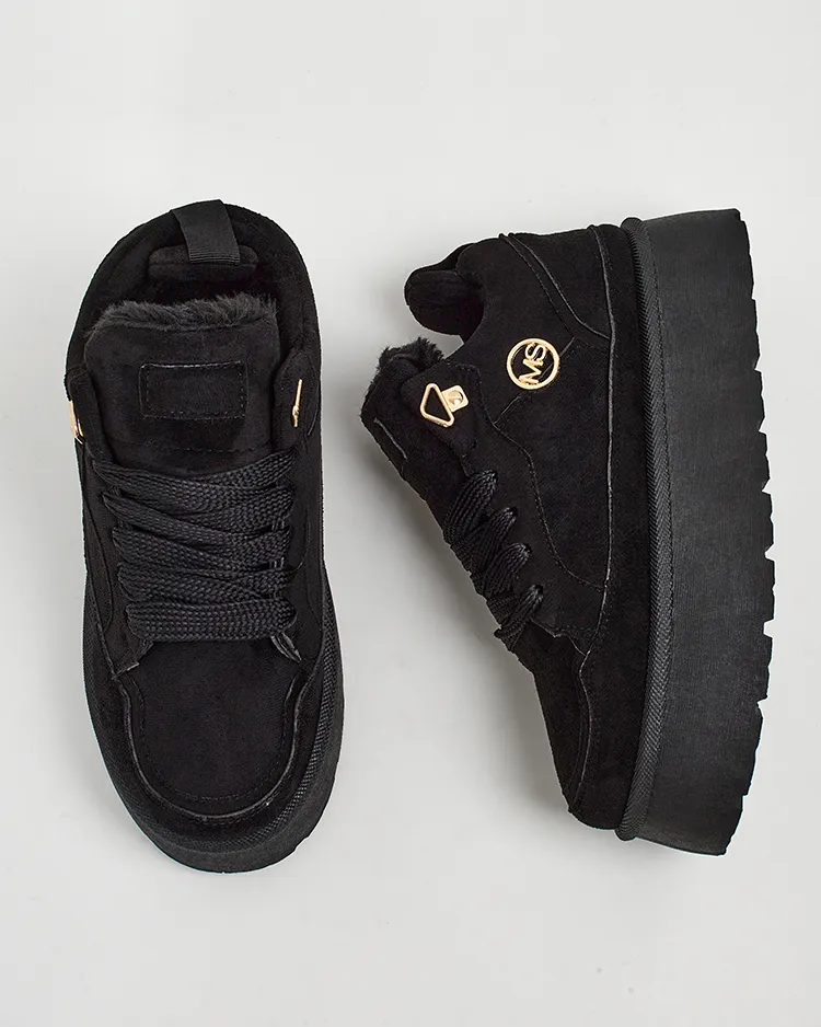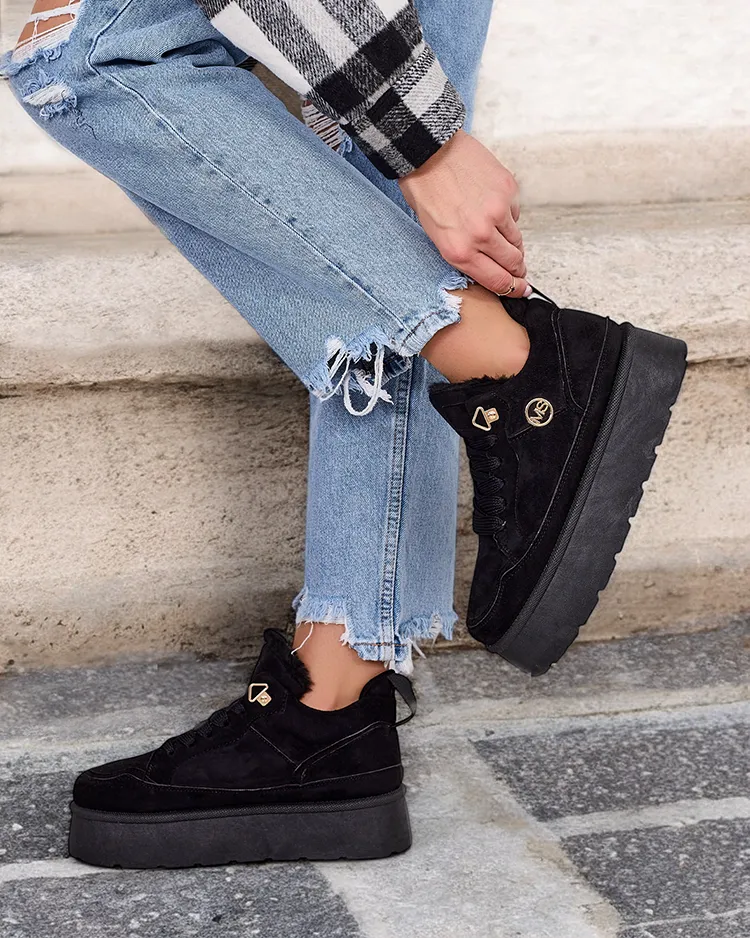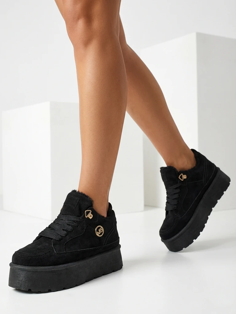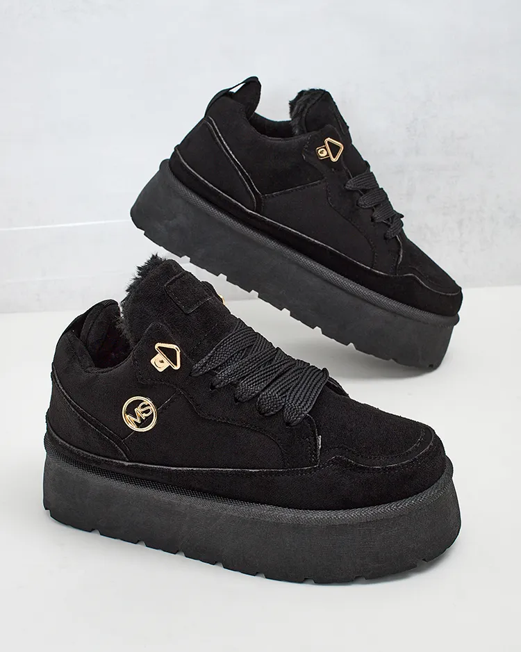 - Dámske športové tenisky na platforme. Šnurovací zvršok, vyrobený z ekologickej kože. Vnútorný priestor plne zateplený kožušinou. Ideálne k športovým outfitom!