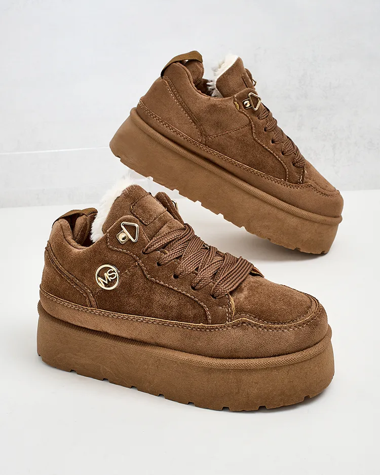 • Dámske športové tenisky na platforme. Šnurovací zvršok, vyrobený z ekologickej kože. Vnútorný priestor plne zateplený kožušinou. Ideálne k športovým outfitom!