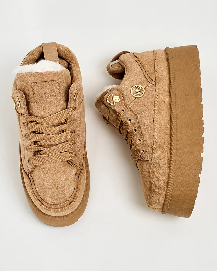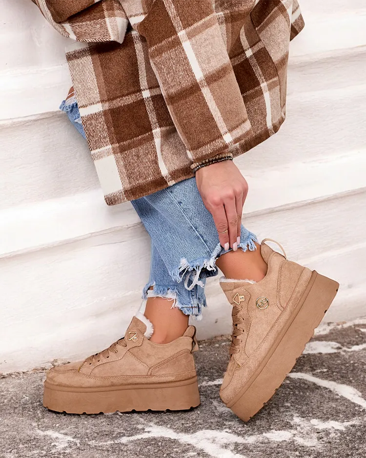 - Dámske športové tenisky na platforme. Šnurovací zvršok, vyrobený z ekologickej kože. Vnútorný priestor plne zateplený kožušinou. Ideálne k športovým outfitom!