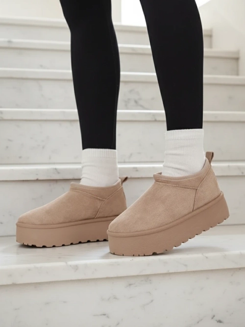 - Skvelé dámske zimné topánky na platforme. Zvršok je vyrobený z ekologickej semišovej kože, stred je zateplený kožušinou. Ideálny základ na zimu!