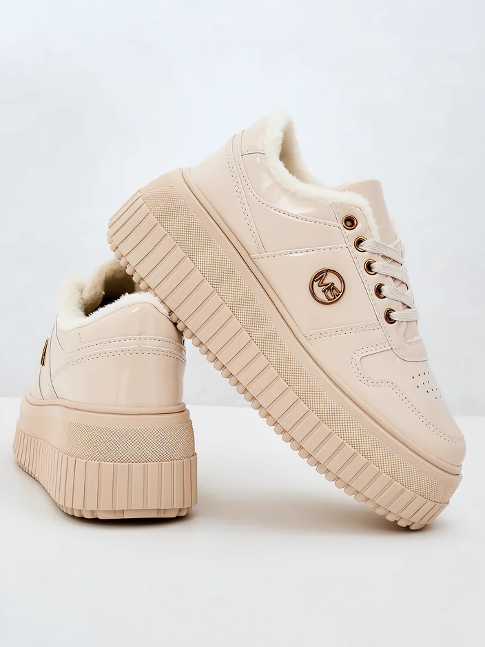 - Športové dámske tenisky na hrubšej podrážke. Šnurovací zvršok, vyrobený z ekologickej lakovanej kože. Vnútorný priestor plne zateplený kožušinou. Ideálne k športovým outfitom!