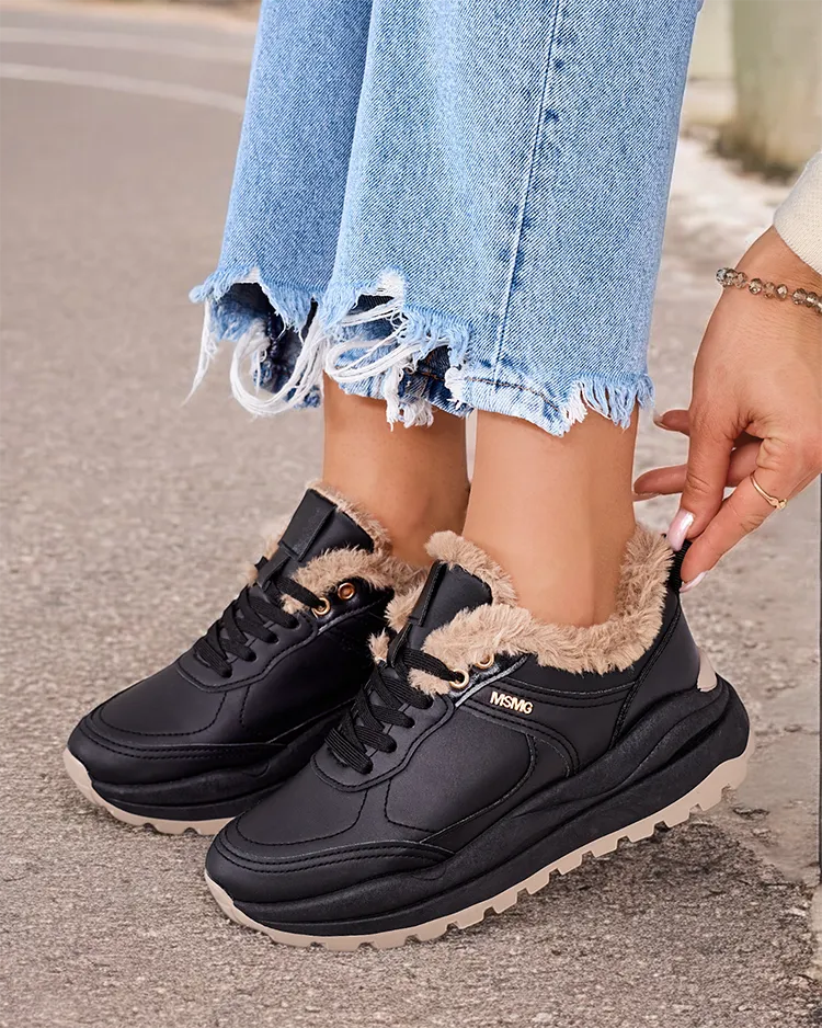 - Dámska zateplená športová obuv na hrubšej podrážke. Šnurovací zvršok z ekokože. Mäkká kožušina vo vnútri. Super doplnok k vašim zimným ležérnym outfitom!
