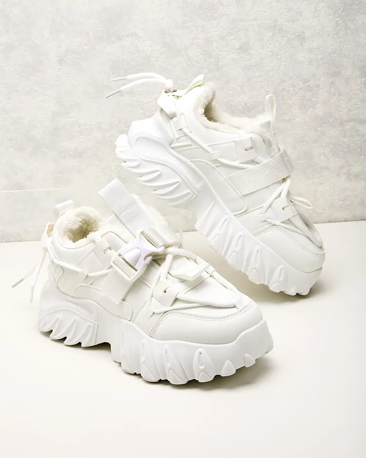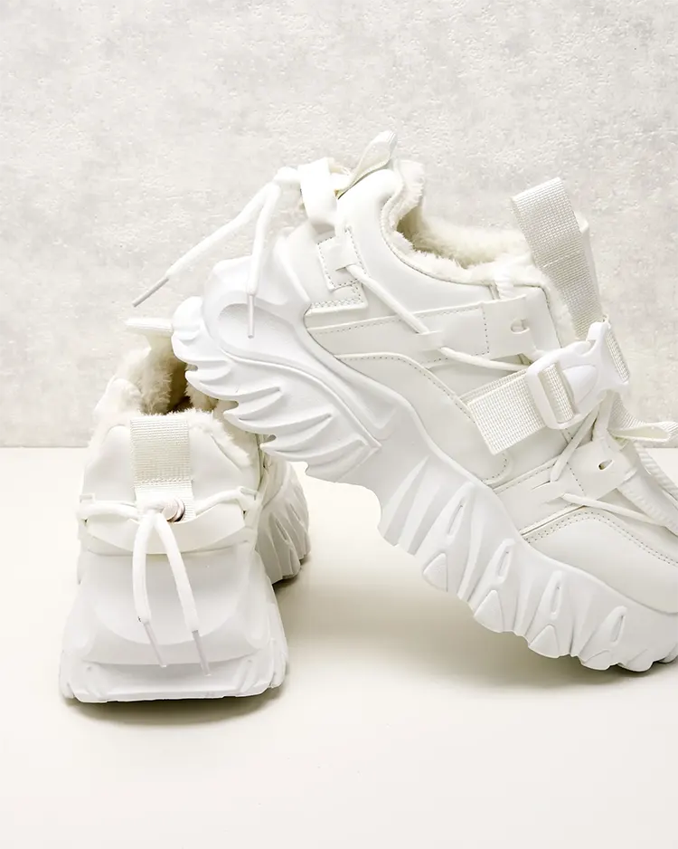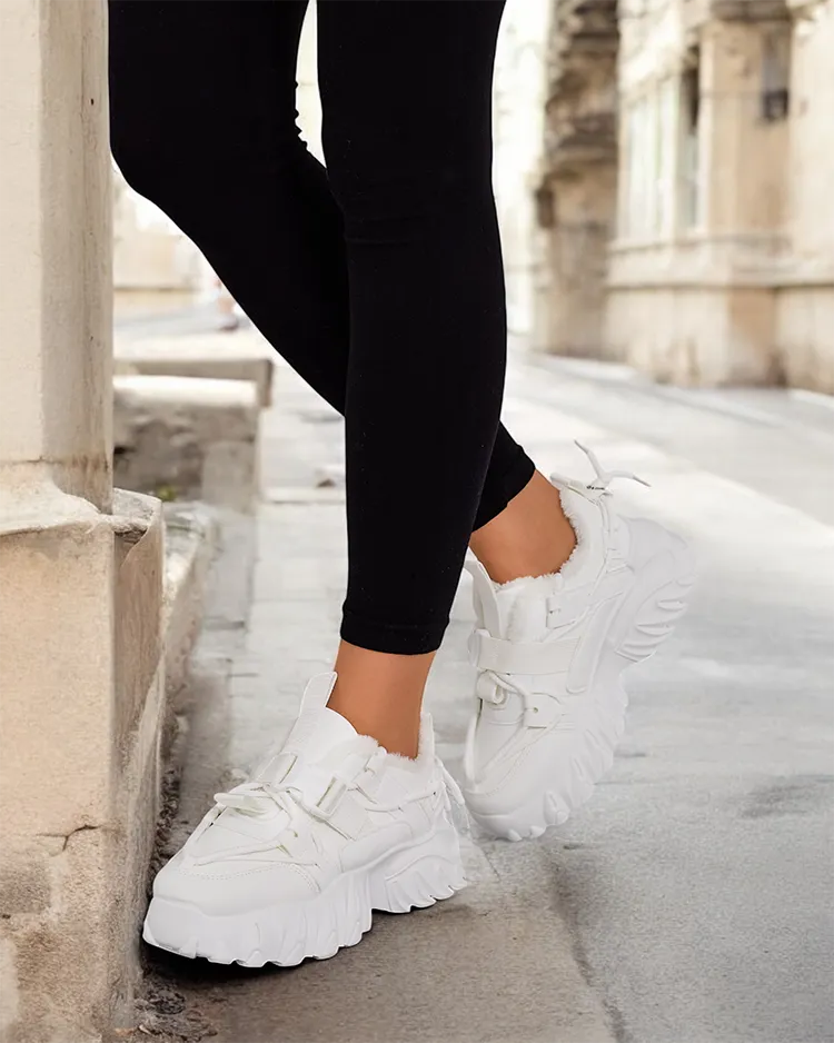 - Dámske športové tenisky na hrubšej podrážke. Šnurovací zvršok, vyrobený z ekologickej kože. Vnútro plne zateplené kožušinou. Ideálne k športovým outfitom!