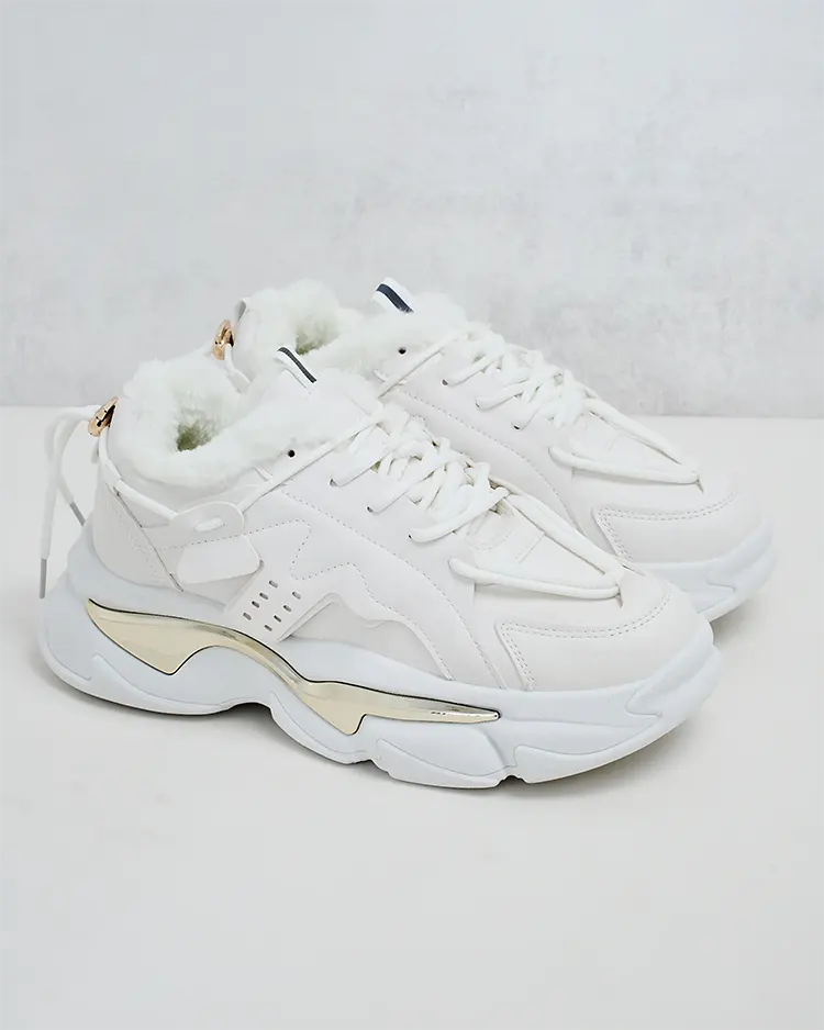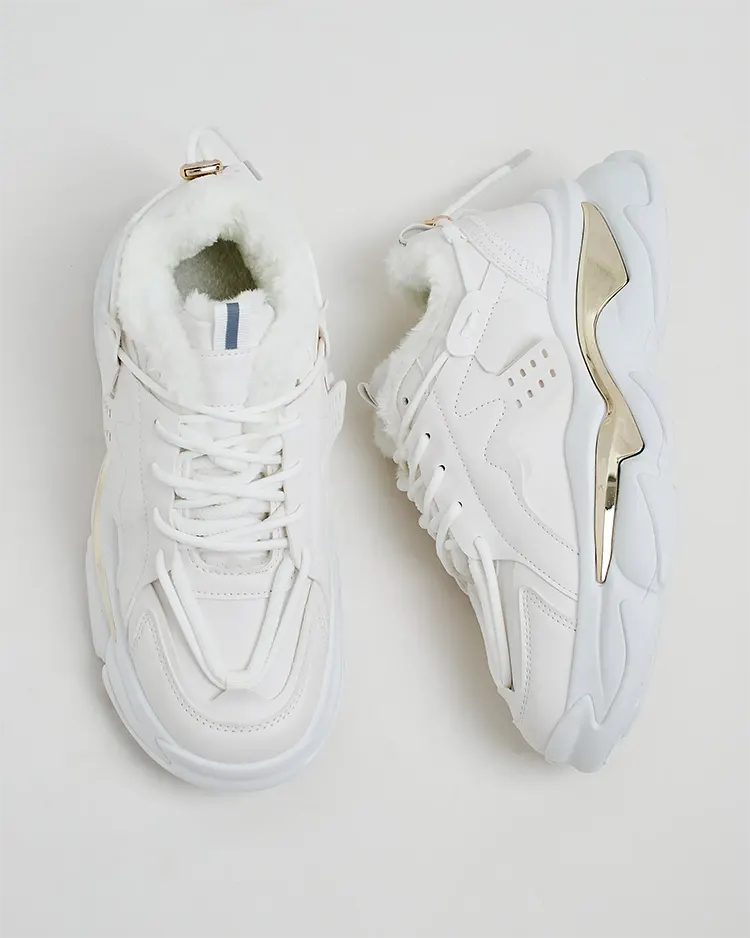 - Dámske športové tenisky na hrubšej podrážke. Šnurovací zvršok, vyrobený z ekologickej kože. Vnútro plne zateplené kožušinou. Ideálne k športovým outfitom!