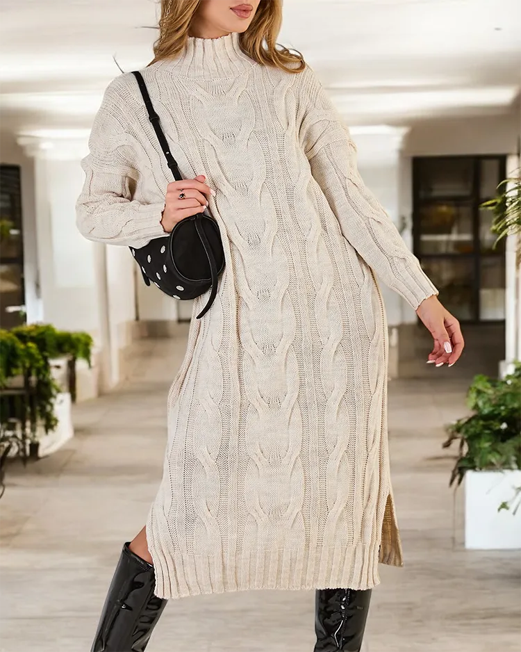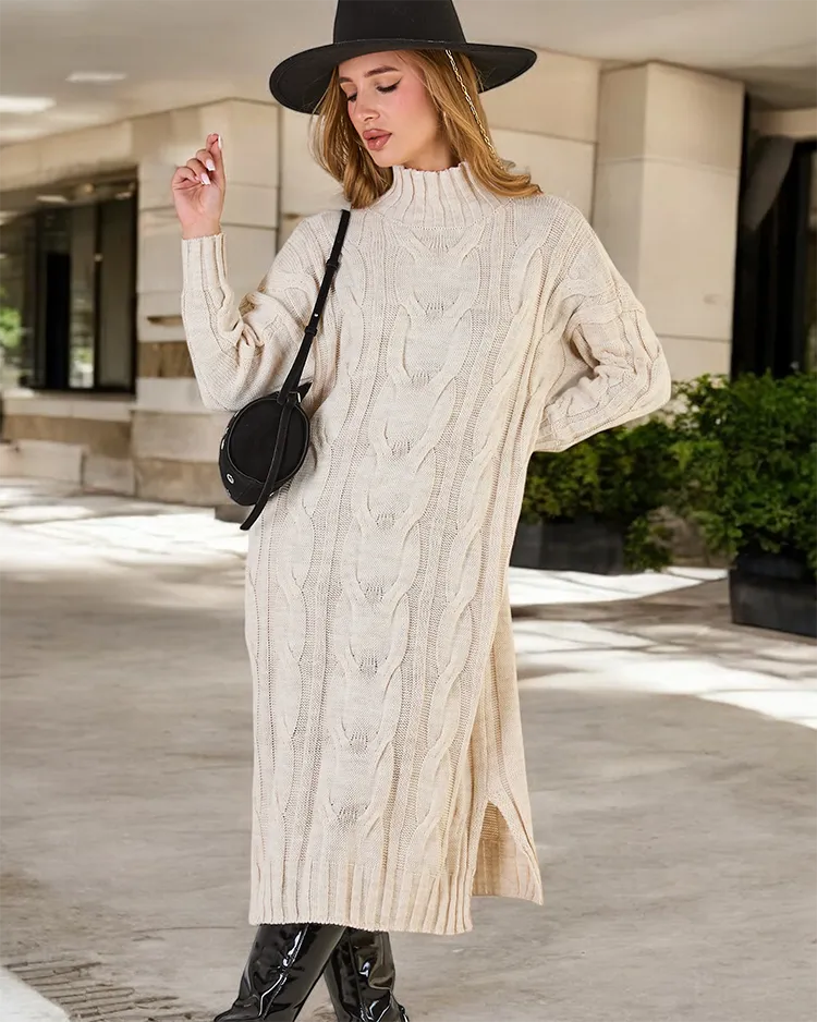 - Svetrové šaty pre ženy s midi dĺžkou a dlhými rukávmi s rolákom. Must-have tejto sezóny! UPOZORNENIE: Presnosť merania (+/-) 1 cm. Rozmery sú merané plocho.