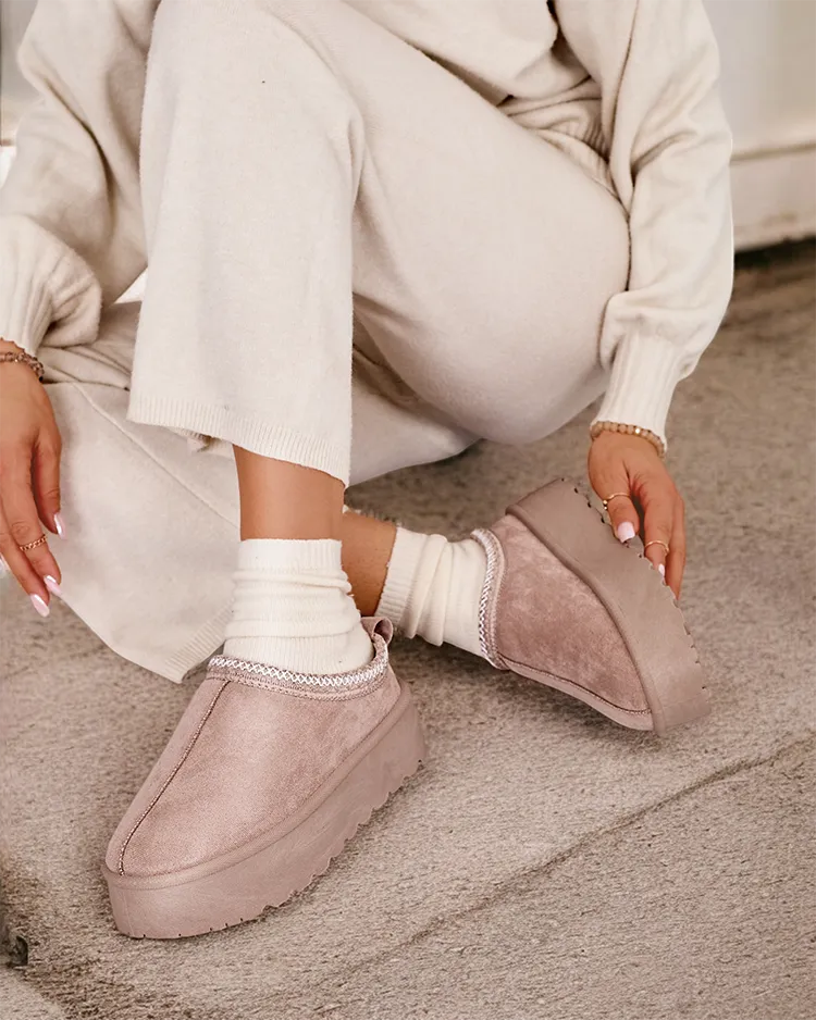 - Skvelé dámske zimné topánky na platforme. Zvršok je vyrobený z ekologickej semišovej kože, stred je zateplený kožušinou. Perfektný základ na zimu!