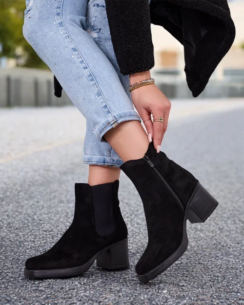 - Čižmy Stiletto - štýl a pohodlie v jednom. Model na zips s okrúhlym nosom. Obuv vyrobená zo semišovej ekologickej kože. Látková stielka. Ideálne k jesenným outfitom!