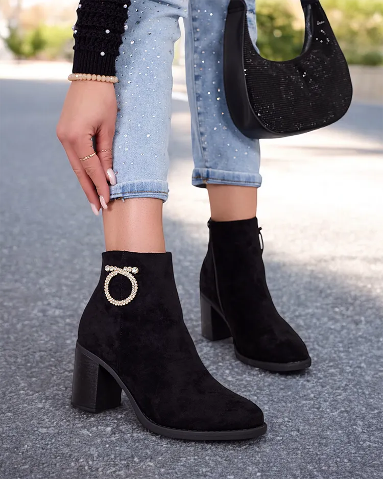 - Čižmy Stiletto - štýl a pohodlie v jednom. Model sa zapína na zips. Celé vyrobené zo semišovej ekokože, stred vyplnený kožušinou. Obuv má na zvršku elegantné zdobenie. Tento model vám dodá sebavedomie!