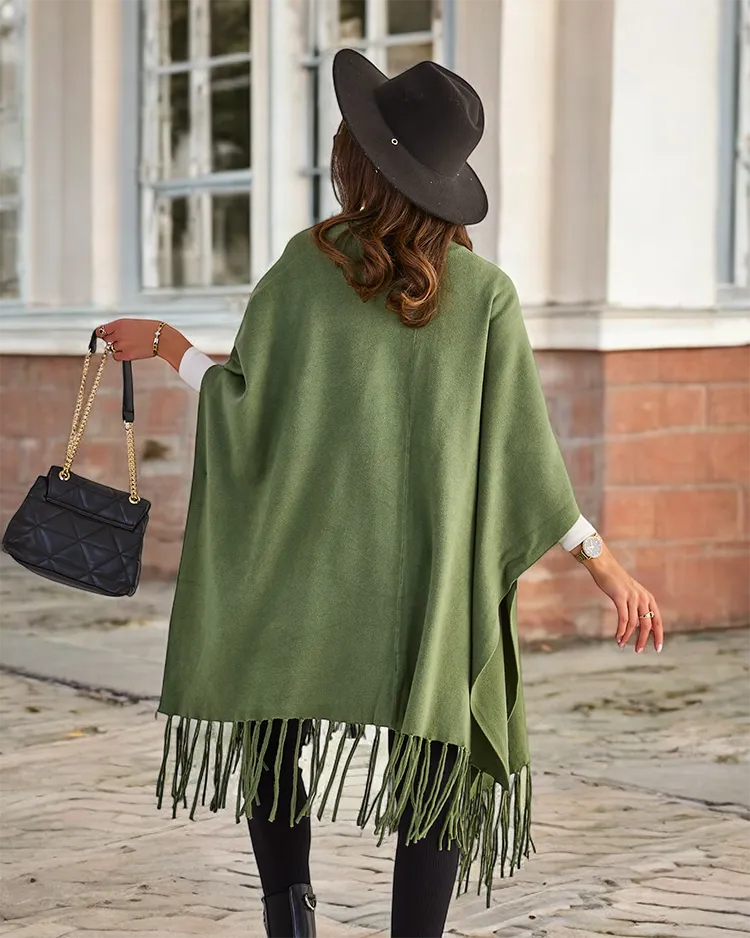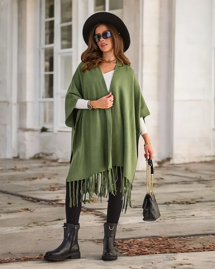 - Elegantné dámske pončo s ozdobnými strapcami. Mäkký materiál, teplo a štýl v jednom. Perfektné na akýkoľvek styling. K dispozícii v rôznych farbách.