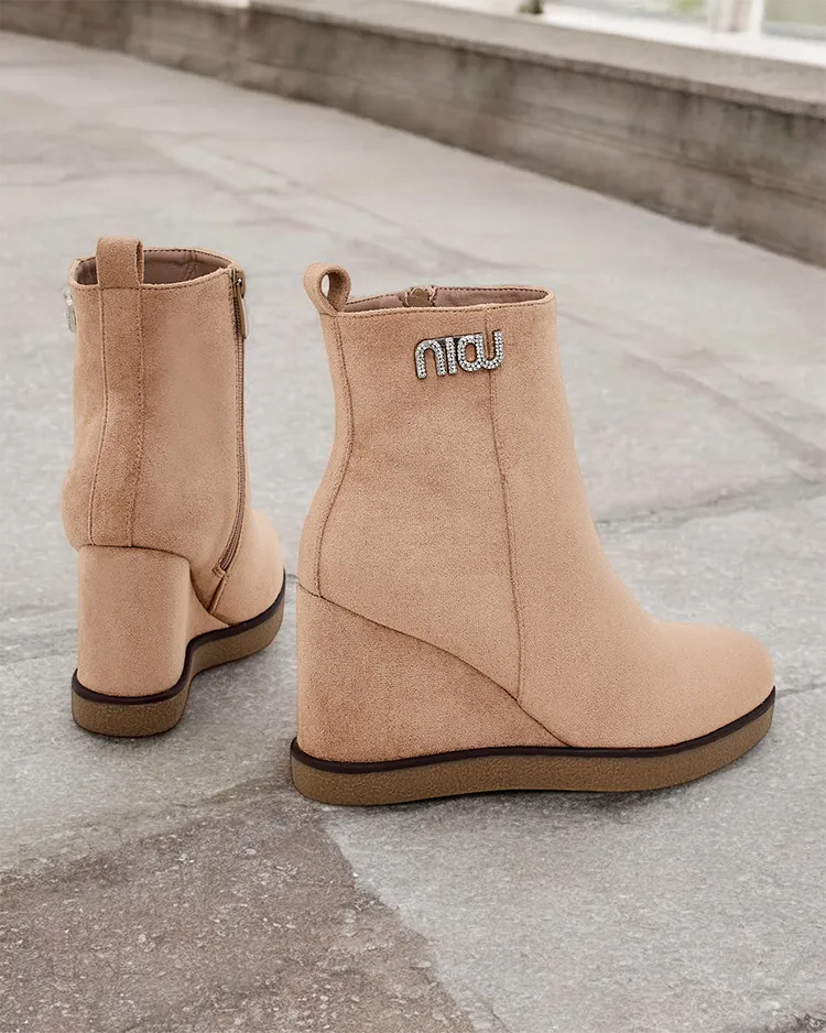 - Elegantné dámske čižmy na kotvičkách, vyrobené z eko-semišu. Obuv vyplnená kožušinou na vnútornej strane. Perfektná voľba na jeseň!
