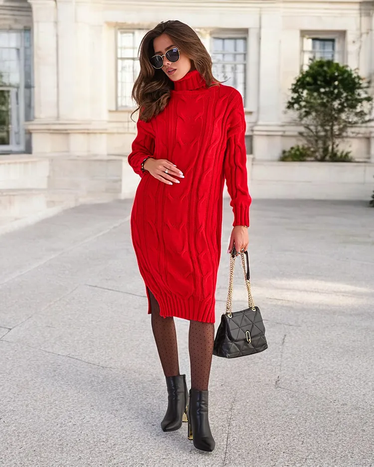 - Dámsky sveter a'la šaty s golierom a dlhými rukávmi. Vyrobený z pohodlného pleteného materiálu. Musíte mať túto sezónu!