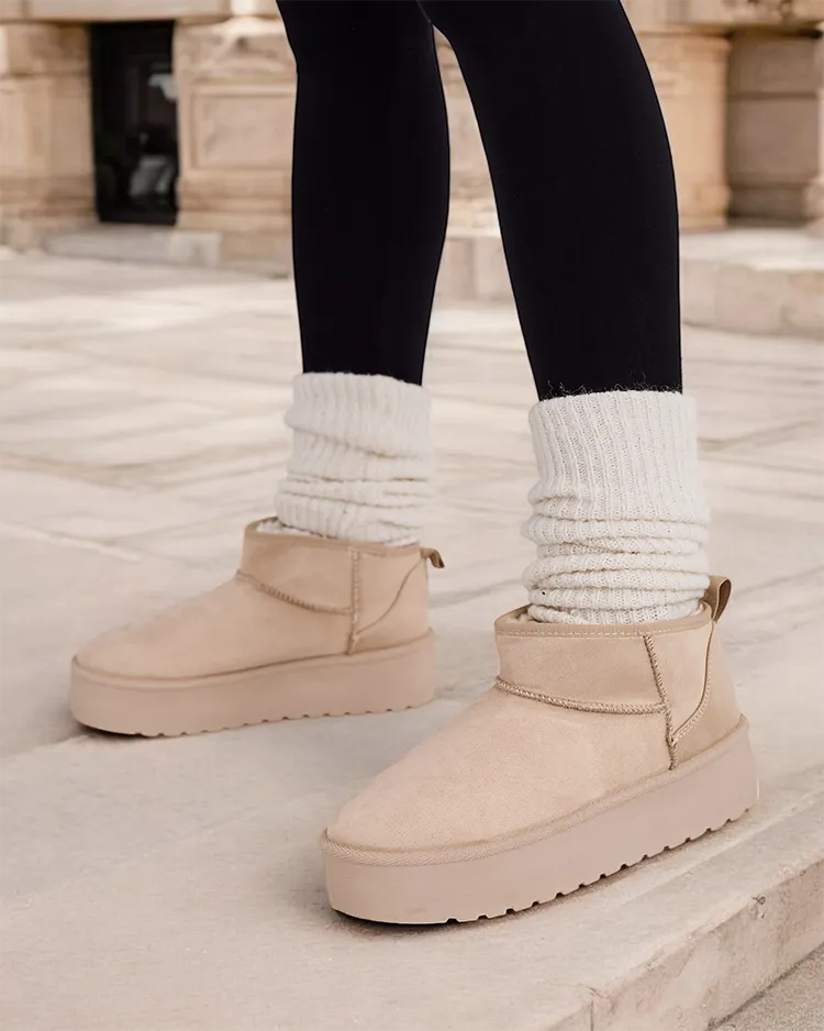• Skvelé dámske zimné snehule na platforme. Horná časť je vyrobená z ekologického semišového kožušiny, vyšívaná futrom. Dokonalá základňa pre zimu!
