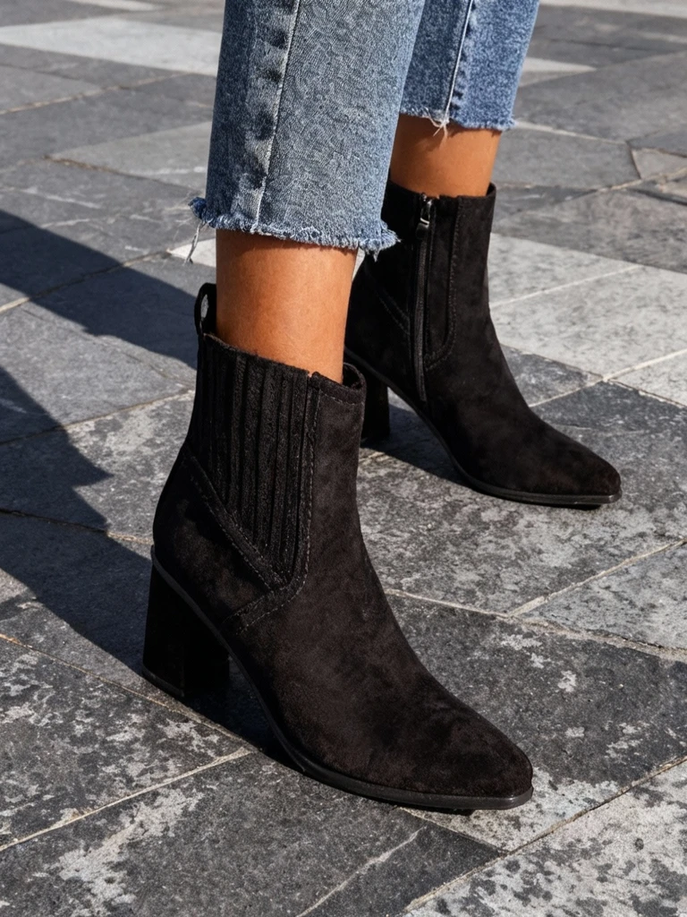 • Elegantné čižmy s malým opätkom sú dokonalou kombináciou elegancie a pohodlia. Model je vyrobený z ekokože a má jemnú podšívku, čo poskytuje štýlový vzhľad na akúkoľvek príležitosť.
