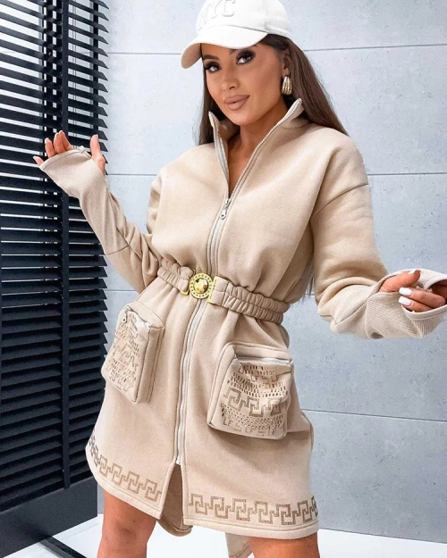 - Veľmi štýlová dámska dlhá blúzka v štýle šiat, vyrobená z príjemného materiálu. Model má dlhé rukávy, asymetrický spodok a ozdobu zo sequinov. Okrem toho je priložený aj opasok. Presnosť merania (+/-) 1 cm.