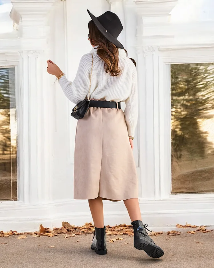 - Dámska midi sukňa vyrobená z mäkkého materiálu a'la zamat. Model prichádza s opaskom. Ideálna základňa pre mnoho špeciálnych outfitov! POZOR: Presnosť merania (+/-) 1 cm.