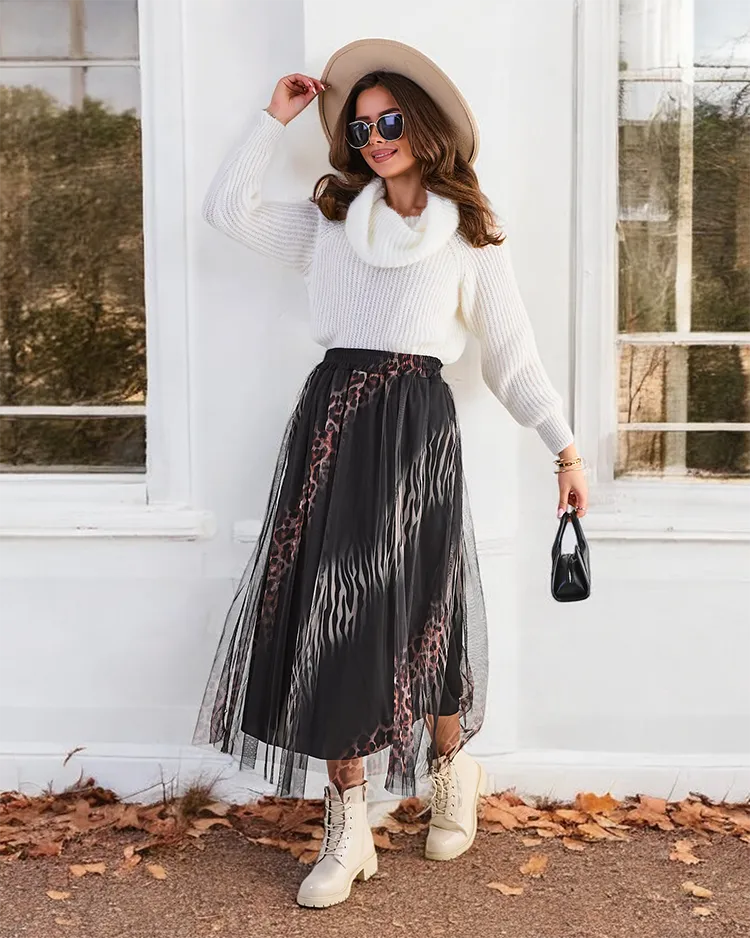 Royalfashion Vzorovaná ženská midi sukňa s tutu
