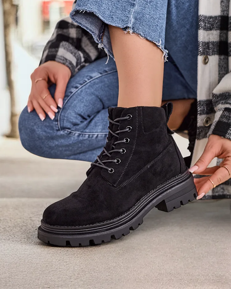 • Mäkké podšité dámske trappery vyrobené z eko kože zamszu. Nohovica viazaná a zaviate zipsom. Vnútro podšité futrom. Ideálne topánky na zlé počasie!