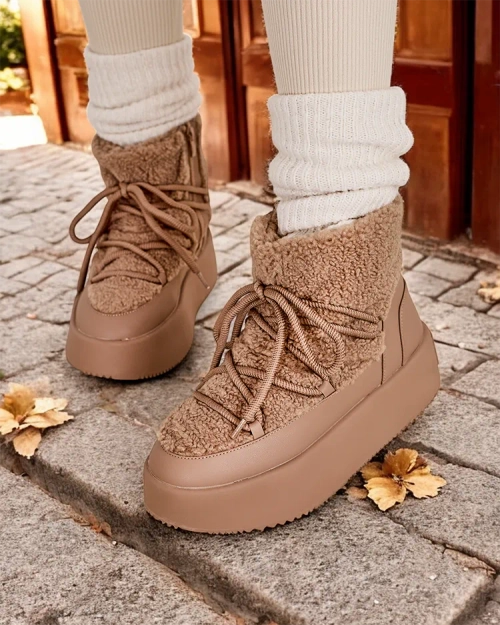 - Dámske snehové topánky s holeníkom vyrobeným z kombinácie ekokože a príjemné látky. Vnútri je pohodlná futrová výstelka, topánky majú zips a šnurovaný holeník. Ideálne na zimu!