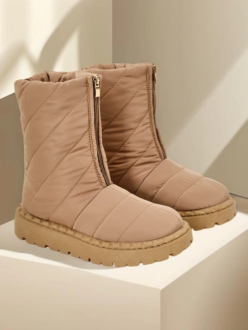 - Ženské snehule s vrchnou časťou vyrobenou z cerata-podobného materiálu. Vnútri je kožušinová podšívka a obuv má zips uprostred. Ideálne pre chladnejšiu sezónu!