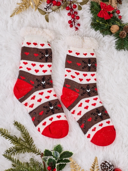 - Krásne hrubé dámske ponožky s vianočným motívom. Vnútri vybavené bielym teplým kožúškom. Ponožky sú ideálne pre chladné zimné večery!